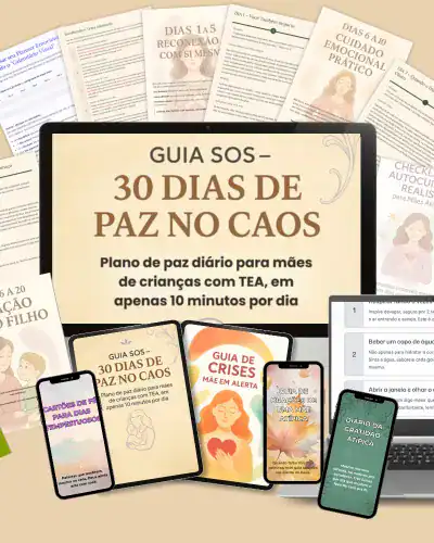 O Guia SOS não vai mudar o autismo do seu filho. Mas vai mudar como você vive cada dia ao lado dele. É pra quem quer parar de se culpar e voltar a sentir leveza.